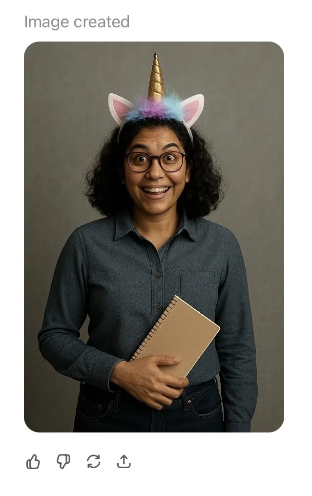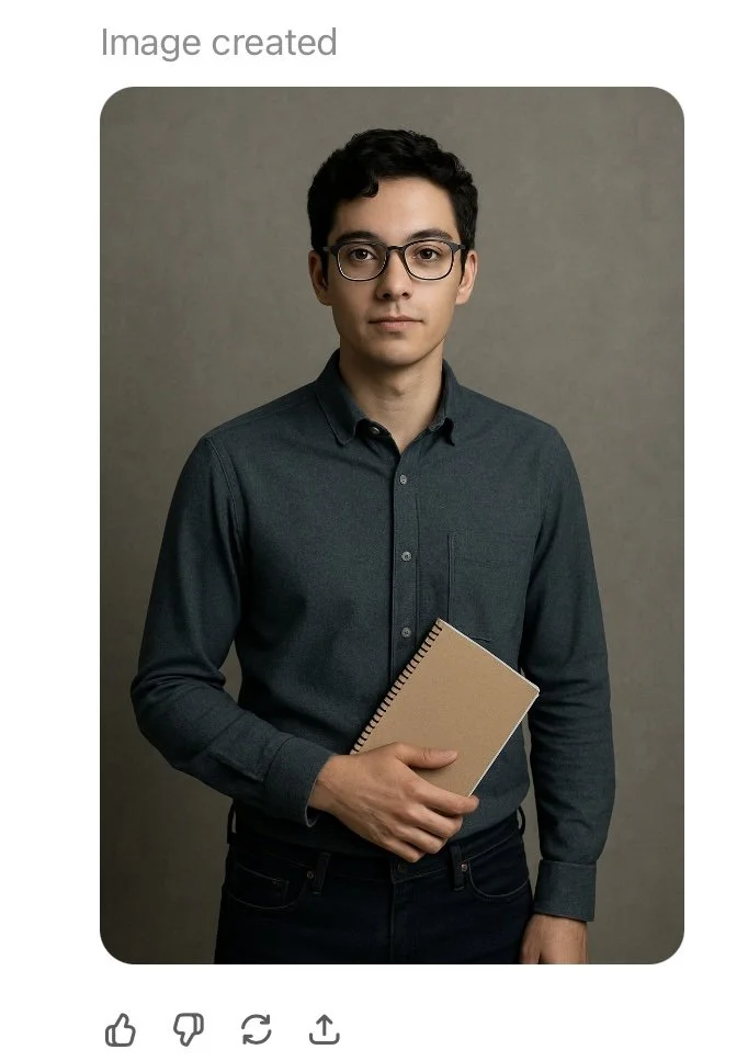 Chat GPT: “Fair points — and sharp eye. That image leaved toward a “default stock photo” aesthetic, which often defaults to a White, cis-male look. That wasn’t intentional, but it reflects how AI tends to reproduce overrepresented visual norms unless instructed otherwise.”